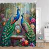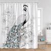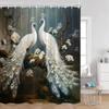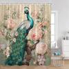 Peacock Shower Curtain Beautiful Blue Bird Pink Flower Tree Chinese Style Elegant Bath Curtain Modern Bathroom Decor with Hook