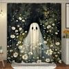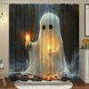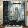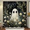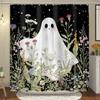 Cute Ghost Shower Curtain Cartoon Spooky Flower Plant Candle Watercolour Modern Home Polyester Fabric Bathroom Decor Curtain Set