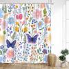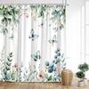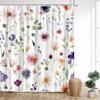 Colorful Floral Shower Curtain Watercolor Flower Leaves Modern Minimalist Bath Curtain Polyester Cloth Bathroom Decor with Hooks