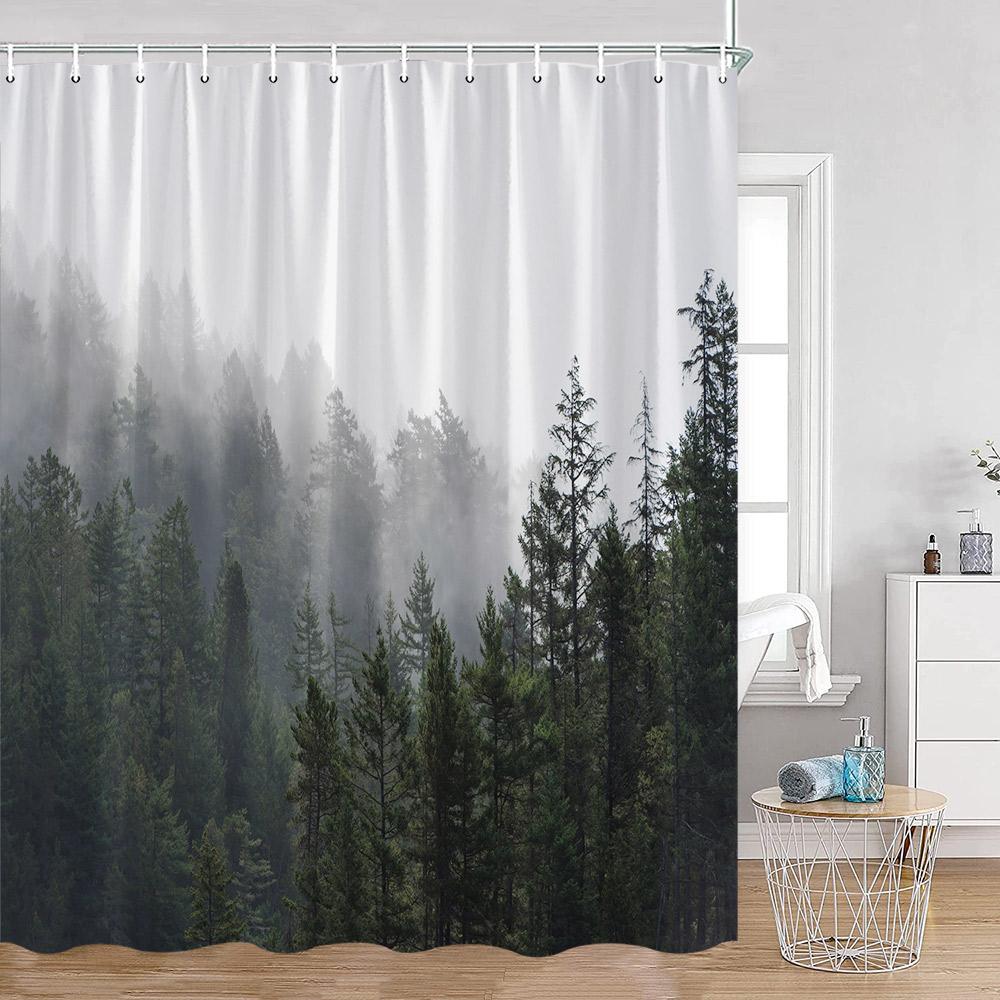 Misty Pine Forest Shower Curtains Rustic Nature Forest Green Pine Trees Fantasy Woodland Bath Curtain Modern Home Decor for Bath
