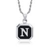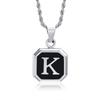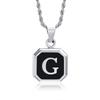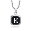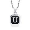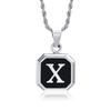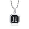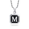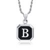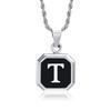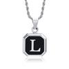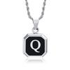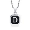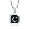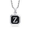 Initials Necklaces for Men Women,A-Z 26 Letters Black Square Stainless Steel Pendant Collar,45-60CM Twisted Rope Chain Gifts