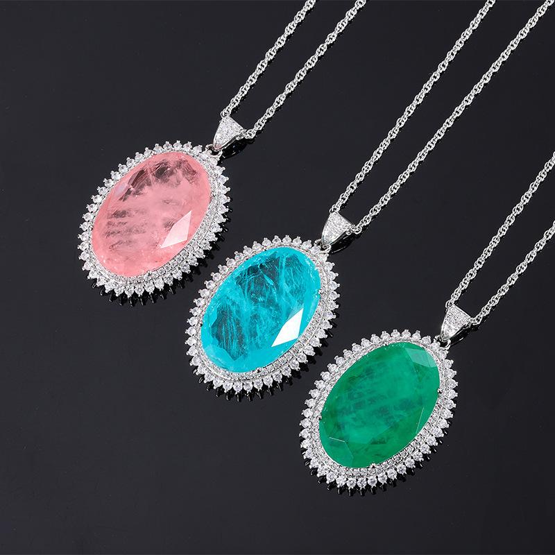 Jewelry Wind Simulation Color Treasure Pendant Big Dan Sweater Chain Necklace Main Stone 20 * 30