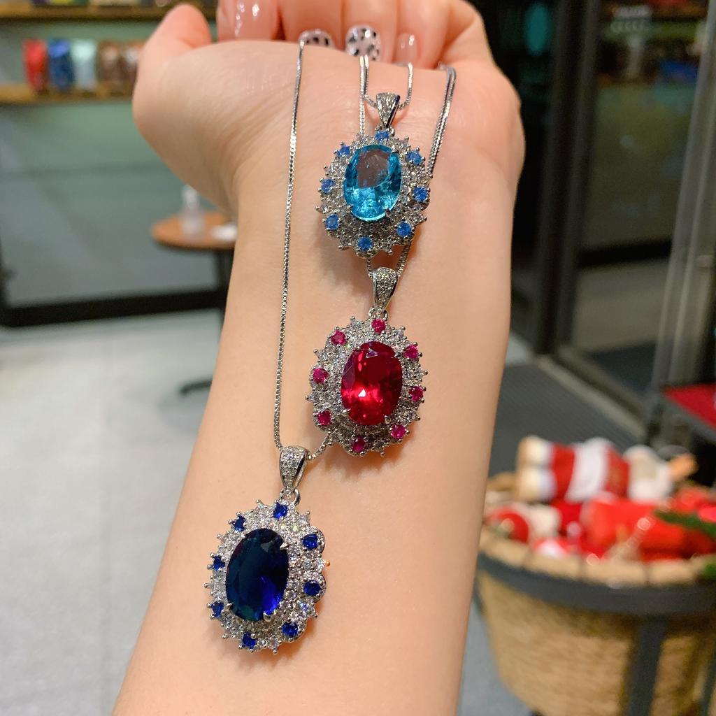 Pendant Necklace Women'S Creative Micro-Inlaid Zircon Sea Blue Red Corundum Sapphire Blue Women'S Pendant Necklace
