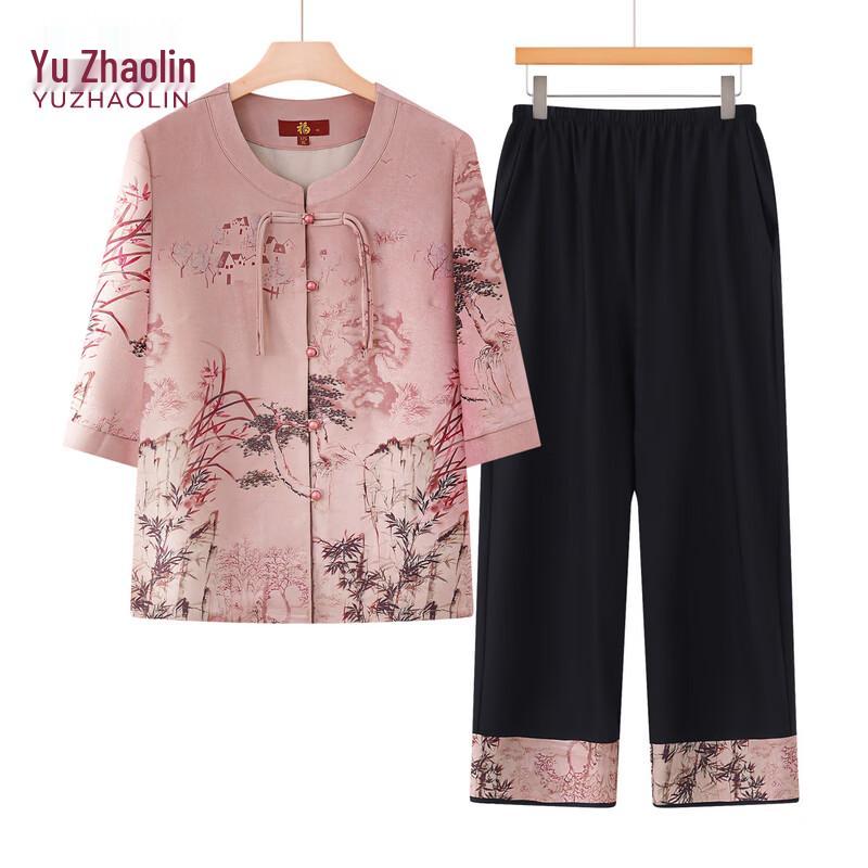 Yuzhaolin Women's New Chinese Style Summer Blouse & Cardigan Set