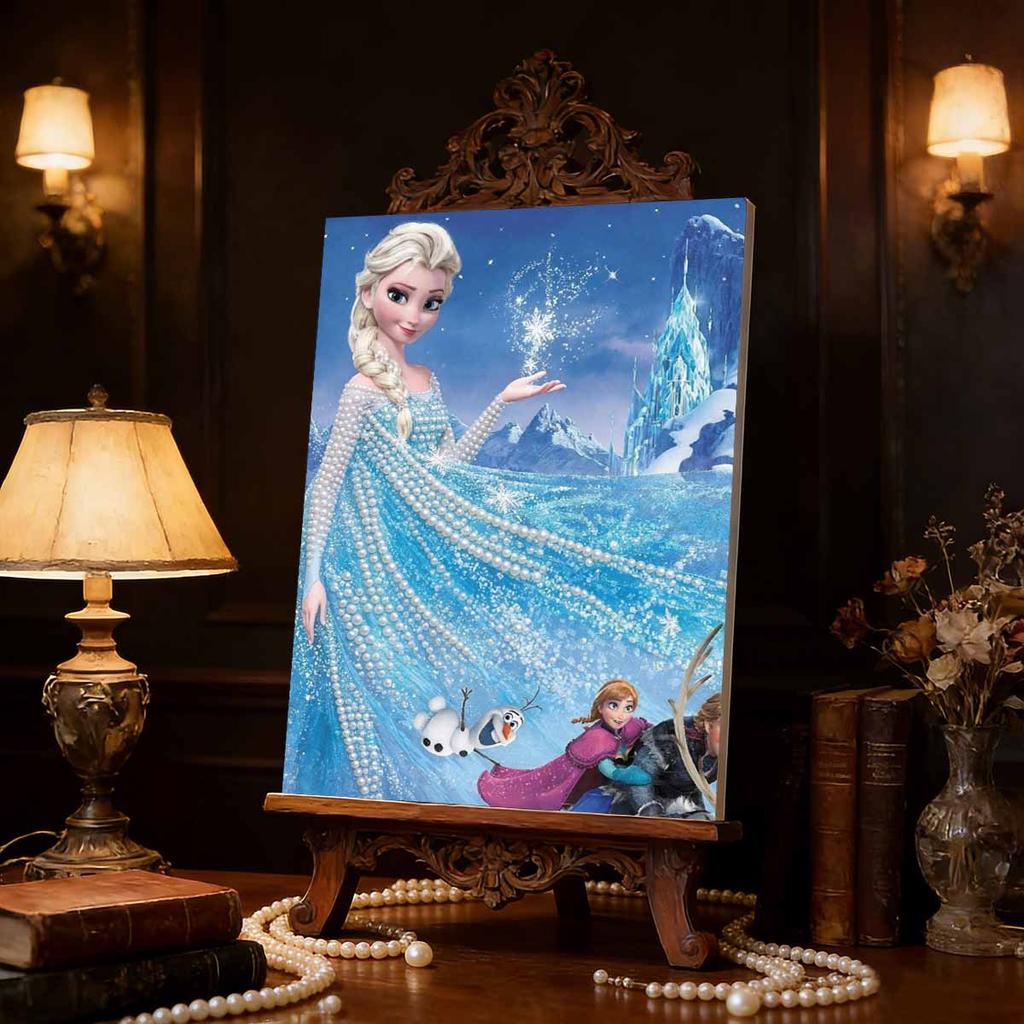 Frozen Elsa & Friends Pearl-Inlaid Frameless Art | Handmade Pearl Craft, Ice Castle Theme, for Frozen Dreamy Home Decor & Gift Option