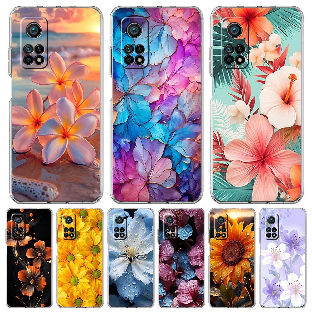 Phone Case For Xiaomi Poco X6 X5 NFC X3 F6 F5 Pro F4 F3 M3 14 13T 12T 12 13 Lite 11 Mi 5G Clear Cover Beauty Flowers Leaves
