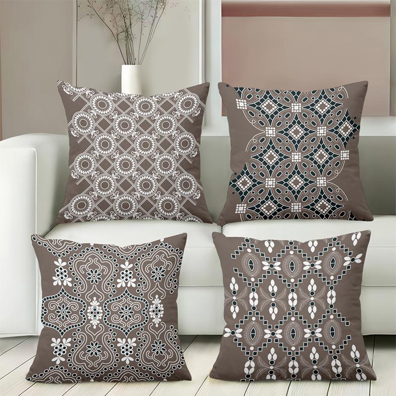 Brown Throw Pillow with Intricate Geometric Patterns Polyester Pillowcase, Sofa Decorative Cushion Cov Headboard Pillow