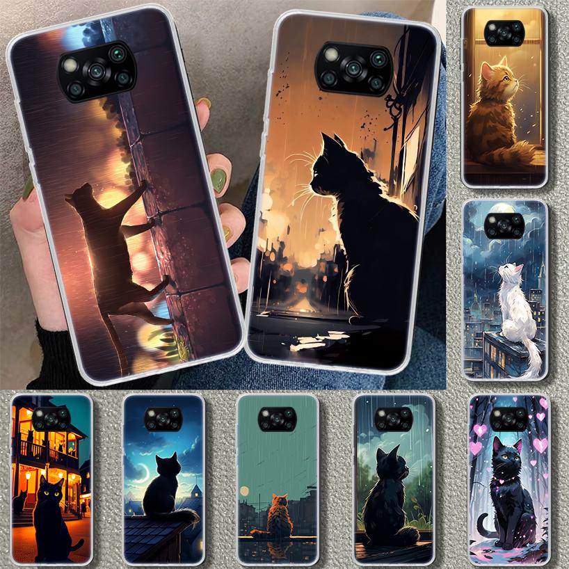 Anime Cat Rain Animal Phone Case Cover for Xiaomi Poco X6 X5 X7 Pro F7 Ultra Redmi 15C 15 13C 13 12C 12 10C 10 10A 9C 9A 9T 9 Co