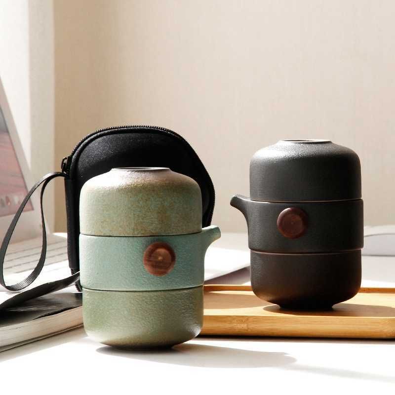 Japanese-Style Ceramic Teapot Lid Bowl Teacup Handmade Portable Travel Office Tea Set 210813