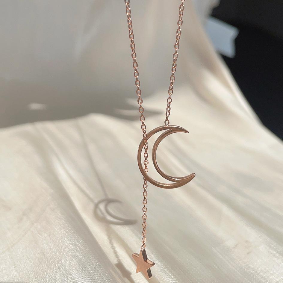 Star Moon Star Titanium Steel Necklace Women'S Autumn And Winter Sweater Chain Does Not Fade Sweet Simple Clavicle Chain