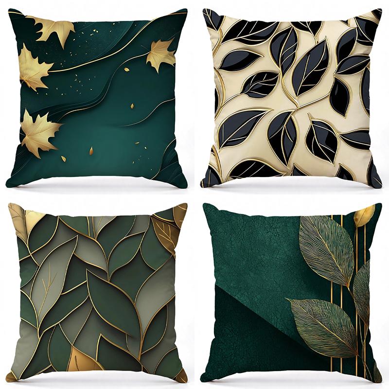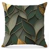 Green Leaf Patterned Cushions With Gold Accents Square Polyester Pillowcase, Modern Sofa Decorative Cushion Cover