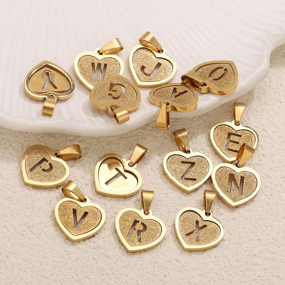 5Pcs/Bag Stainless Steel Gold-plated Heart Letter Pendant DIY Accessory Fashionable Versatile Letter Necklace Pendant