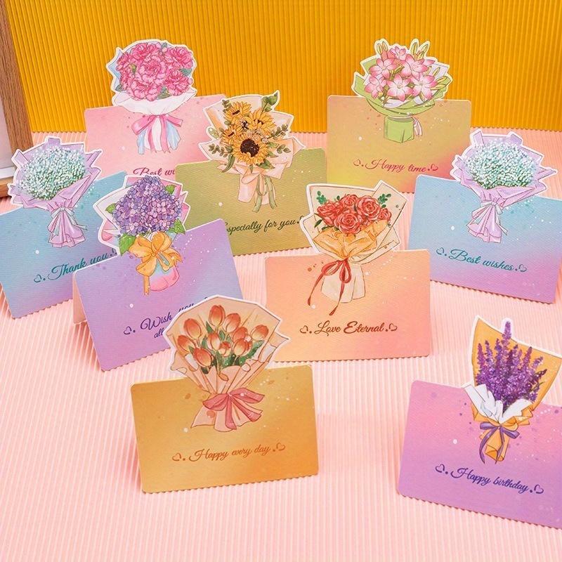 10pcs 3D Bouquet Creative Greeting Card Flower Shop Birthday Wishes Small Cards Teacher's Day Thank-you Card