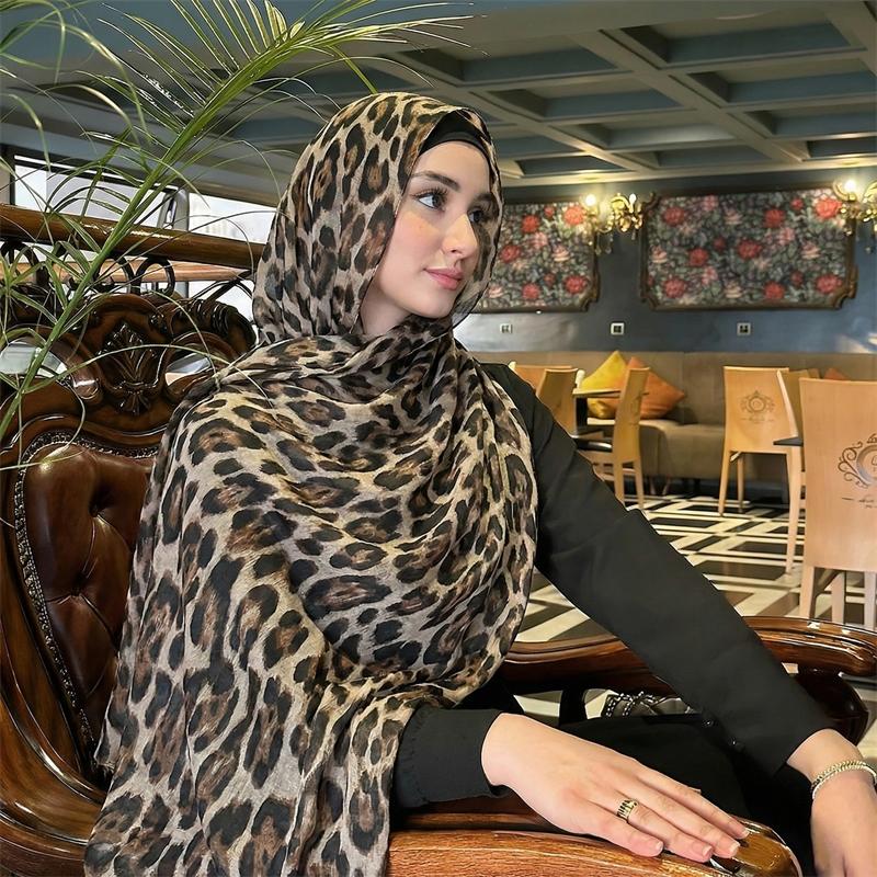2026 New Arrival Leopard Hijabs for Women Spring Muslim Shawls Watercolour Print Scarves Beach Sun Protection Headscarf Summer