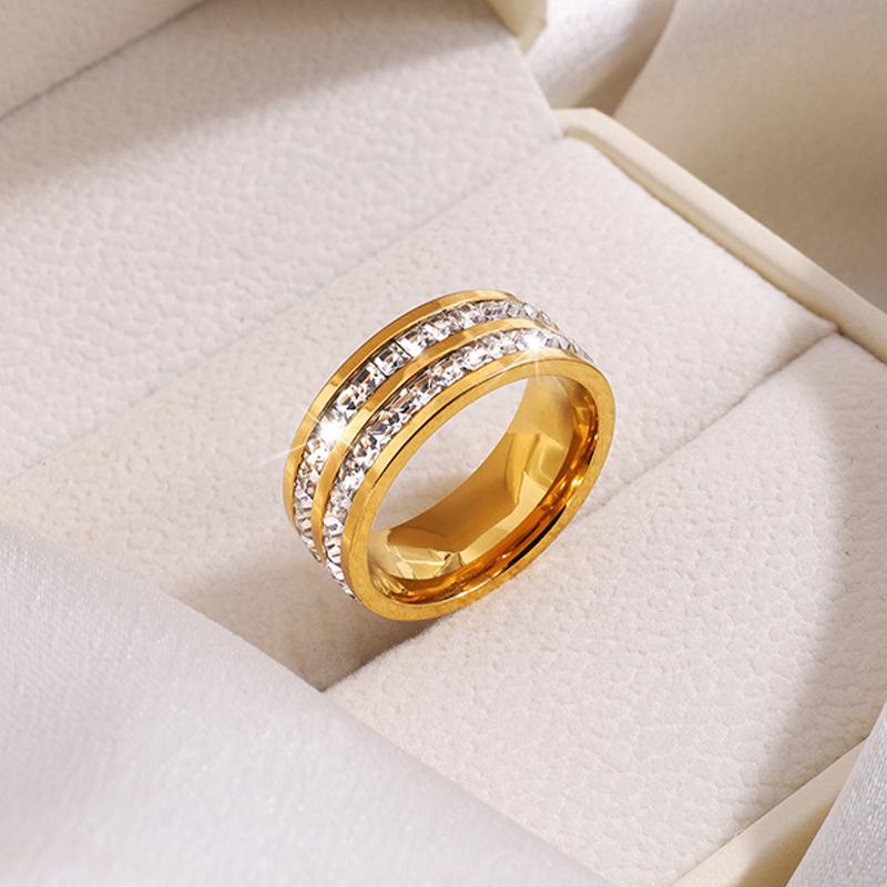 Stainless Steel Double-row Small Square-cut Diamond Ring - Fashionable and Luxurious Full-set Star End Ring for Women, Versatile Finger Ring