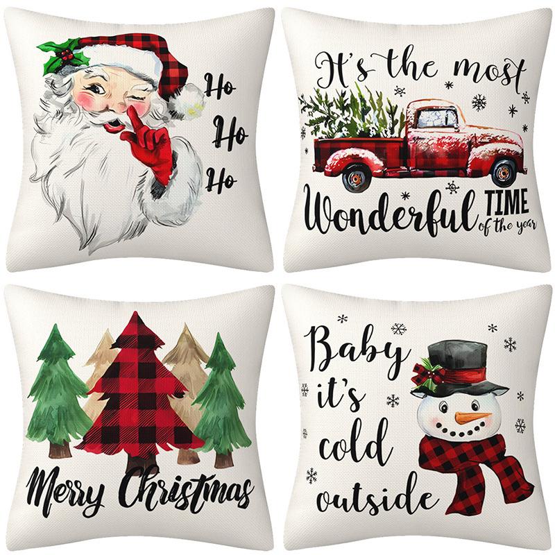 Black And Red Buffalo Plaid Christmas Pillow Cover Linen Home Ornament Pillow Cushion Cover Combination Premium