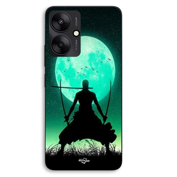Coque de téléphone personnalisée - MANIACASE - Xiaomi Redmi 13C 5G - Silicone TPU - Roronoa Zoro triple épée pleine lune - Noir