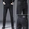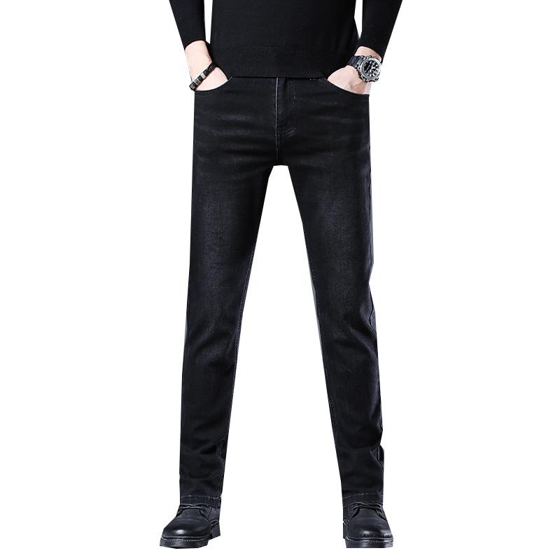 Straight-leg Jeans Autumn High-end Casual Versatile Trendy Brand Stretch Slim Straight-leg Jeans Men's Solid Color