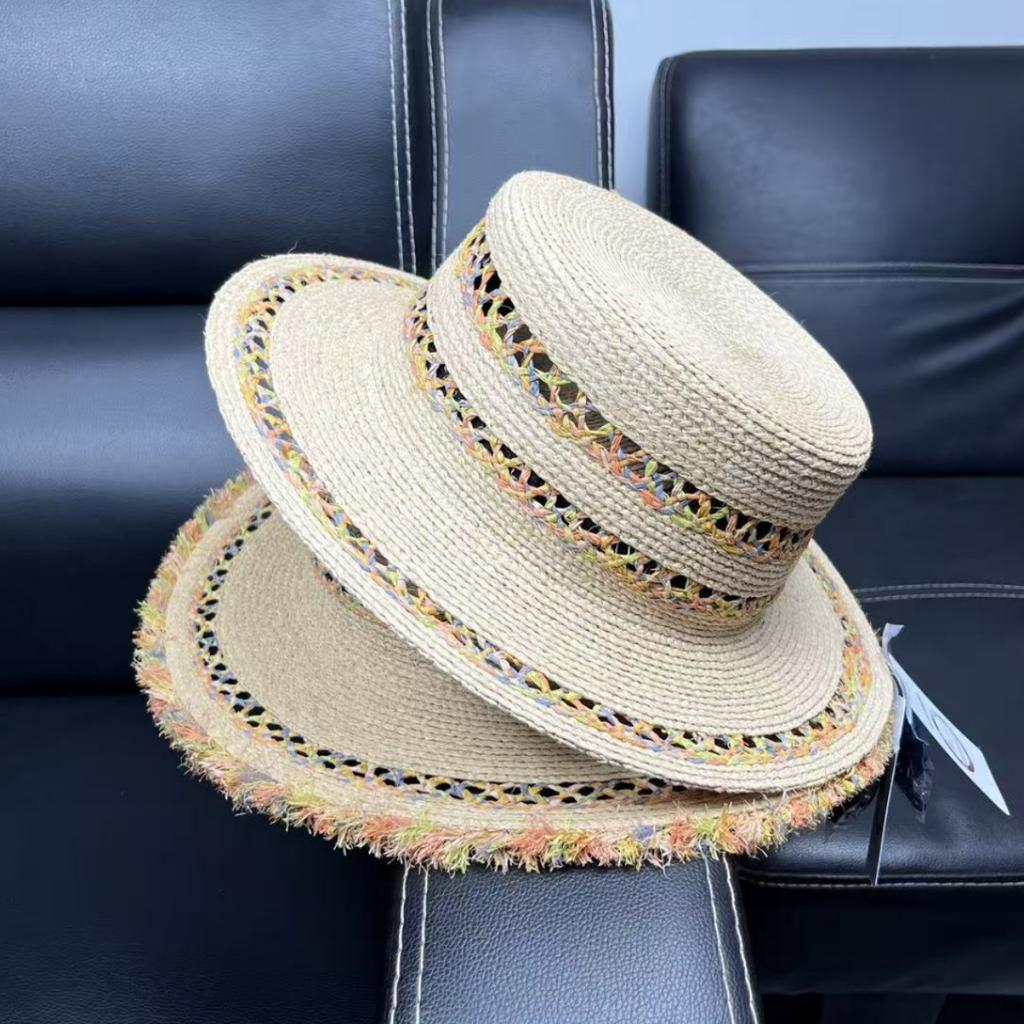 High Quality Rainbow Decorative Crochet 100% Raffia Hat Women's Sunscreen Flat Top Top Top Hat Summer Outing Straw Hat