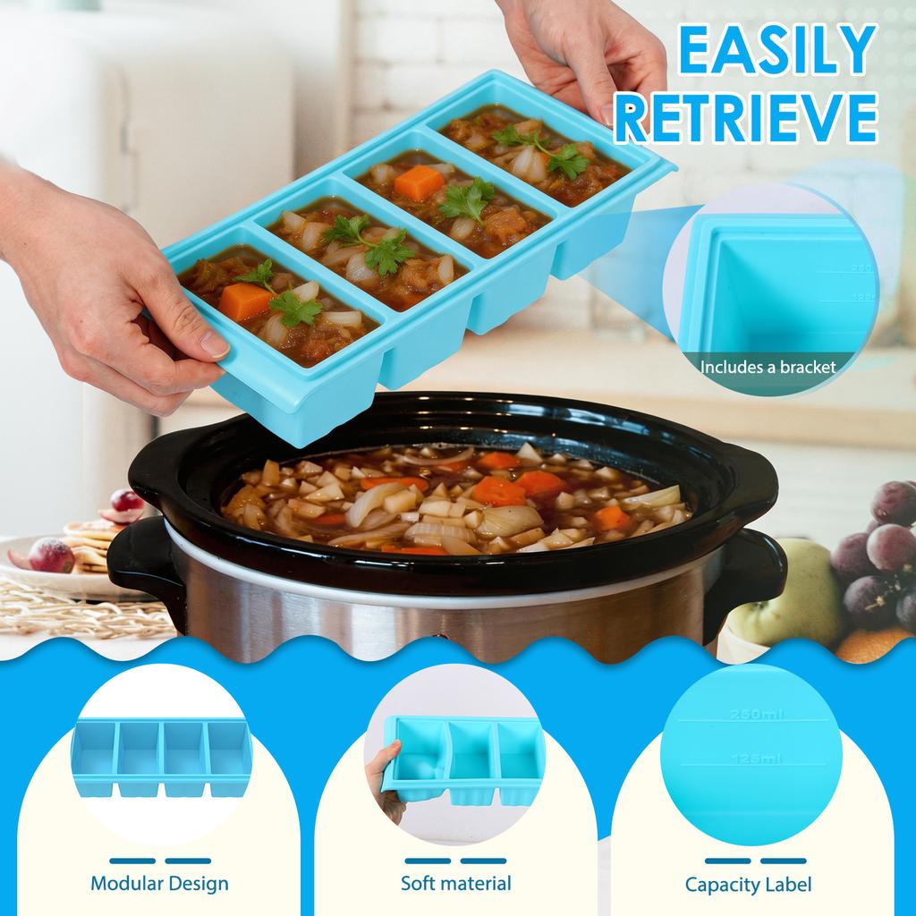 1Pc 2/4 Grids Silicone Freezer Tray Reusable Soup Ice Cube Trays with Lids Leak Proof Food Storage Boxes for Kitchen Accessories