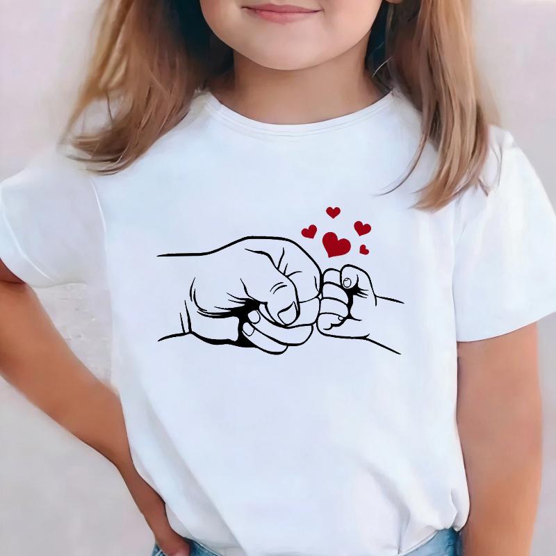 Lovely Daddy Love Hand Design T Shirts Kids Children's T-shirt Boys Girls Summer Spring Casual Top Tee
