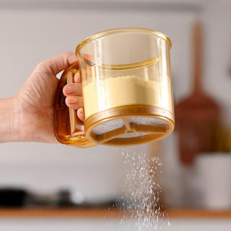 1Pcs Non-Stick Baking Tools Semi-Automatic Flour Sifter Transparent With Hand Press Design Kitchen Filter Screen Flour Sieve