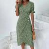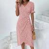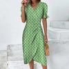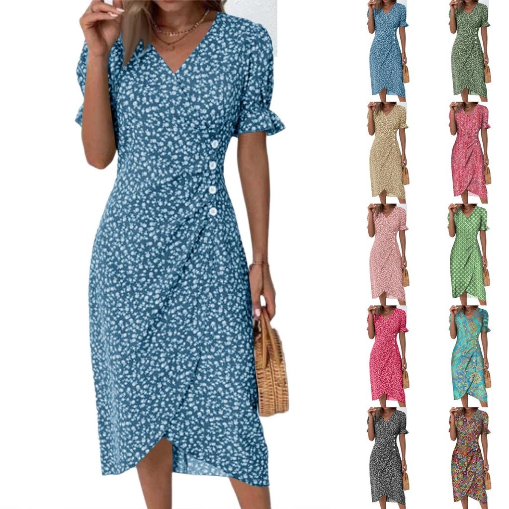 Women's Summer Casual Dress V Neck A-line Boho Ditsy Floral Flounce Sleeve Wrap Hem Dress