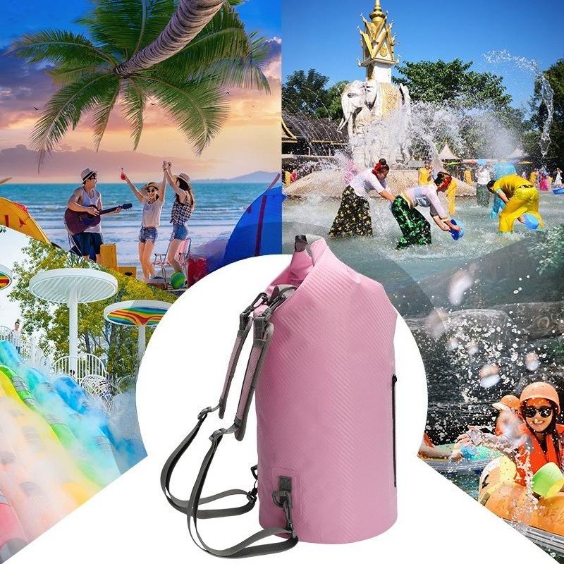 Carbon Fiber Waterproof Portable Bucket Bag Waterproof Bag Beach Rafting Swimming Outdoor Backpack 20L