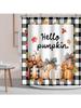 Fall Pumpkin Shower Curtain Buffalo Pumpkins Polka Dot Pumpkin Maple Leaf Autumn Harvesting,Black White Check Fabric BathCurtain