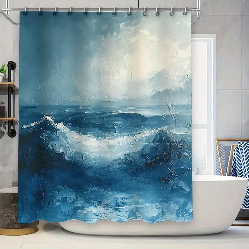 Artistic Blue Ocean Shower Curtain High Quality Waterproof Fabric for Bathroom Decorations 3D Printed Art In Various Sizes