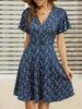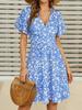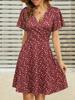Discover a blend of elegance and comfort with this Women's Floral V-Neck A-Line Wrap Dress. Designed for summer, this short sleeve dress is crafted from soft and luxurious materials, featuring milk silk for a smooth feel and artificial silk for a stylish finish. The vibrant floral pattern adds a touch of charm, while the V-neckline and A-line silhouette create a flattering and feminine look, perfect for any summer occasion.
