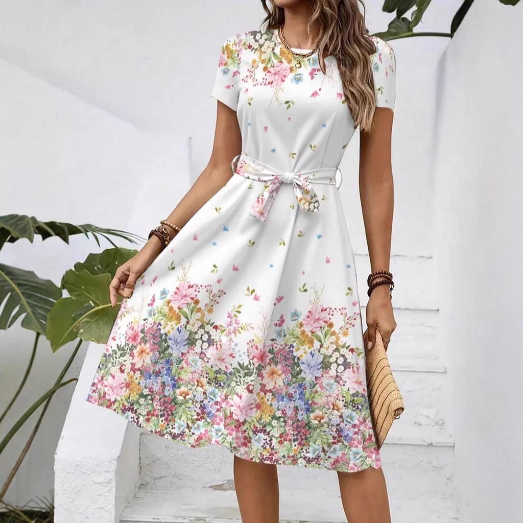 Introducing a stylish and versatile addition to your summer wardrobe, this Women's Casual Printed Belted Dress is designed to offer both comfort and chic flair. Crafted from high-quality polyester, it provides a lightweight and soft feel, perfect for warm-weather wear. The dress features an eye-catching print that adds a touch of elegance, while the adjustable belt creates a flattering silhouette. Ideal for casual outings or semi-formal gatherings, this dress will become your go-to favorite for any occasion.