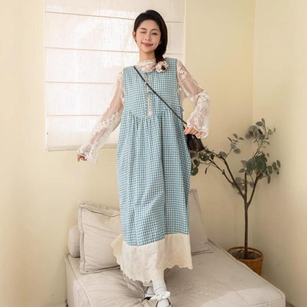 Sweet Lace Plaid Vest Dress: Forest Style, Age-Reducing, Sleeveless & Versatile for Spring/Summer