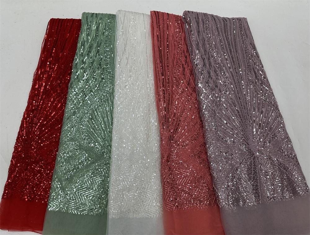 African Sequins Lace Fabric 2026 High Quality Embroidery French Beaded Lace Fabrics Nigerian For Bridal Dress Sewing Material