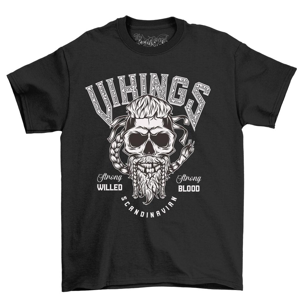 Vikings Strong Willed - Skull Beard Power! Funny T-Shirt Mens Womens Tees Top, Unisex Design, Perfect