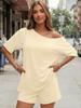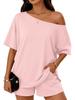 Step into effortless summer style with this chic off-shoulder top and shorts set, designed for women who love the blend of European and American fashion influences. This casual two-piece outfit features a solid pattern, offering a timeless and versatile look. Crafted from luxurious modal material, it promises lightweight comfort and a soft touch against the skin. The top elegantly showcases your shoulders, while the shorts are complemented with convenient pockets, perfect for keeping small essentials at hand. Ideal for warm-weather outings, this set is a must-have addition to your summer wardrobe.