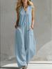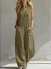 2026 European-American Double Pocket Linen Cotton Sleeveless Casual Jumpsuit