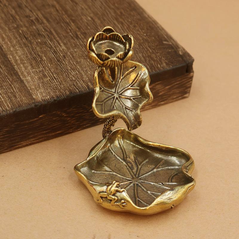 Antique Brass Lotus Leaf Backflow Incense Decorations Solid Pure Copper Frog Lotus Pond Censer Holder Ornaments Tea Pets