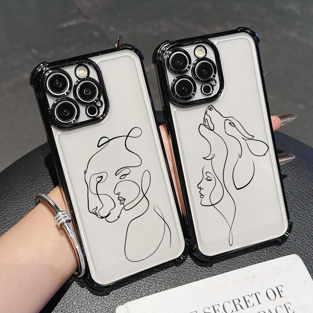 Animal Woman Girl Face Line Funda For iPhone 17 Pro 16 15 14 13 12 11 Pro Max Case 17 Plus 17E 16E 17Air Silicone Phone Cover