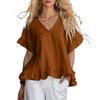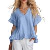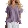 Women's Ruffled V-Neck Shirt Fashionable Casual Short-Sleeved Top