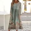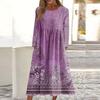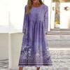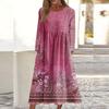 Women's Casual -neck Print Mid-length Dress Long-sleeved Pocket Dress description 1. Design: Round neck long sleeve design, attractive loose comfortable neckline