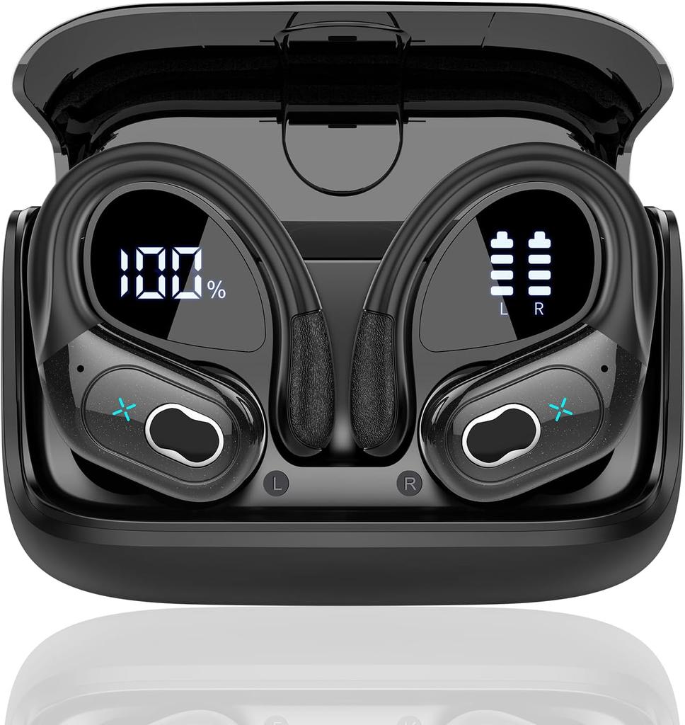 75 Hours Playtime and Dual LED Display: Running headphones provides up to 15 hours continuous using time on a single charge, portable charging case can charge the earbuds for 5-6 times, giving 75 hours of a total playtime. Whether on the road or in daily life, it will provide unparalleled convenience and smart experience. The dual LED display on earphones accurately display the remaining power of charging case and the charging progress of Wireless ear buds.