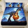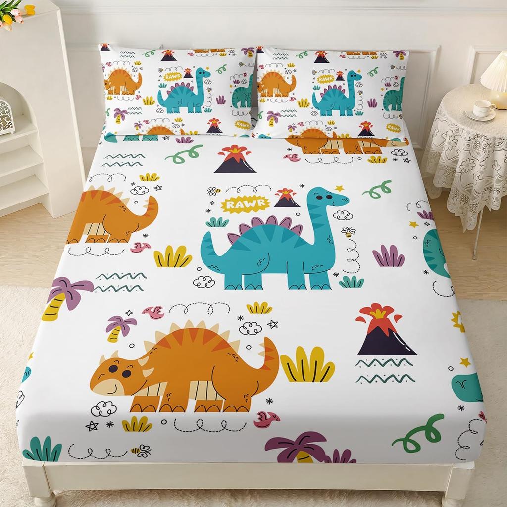 Cute Dinosaur Bedding Set 2pcs Single Size Fitted Sheet with Pillowcase for Kids Boys Teens Cartoon Animal Design