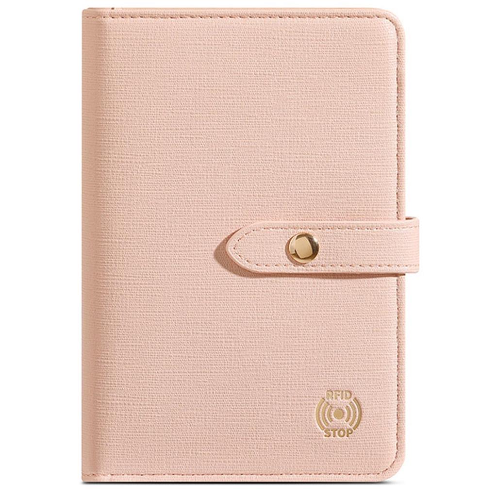 RenLianyi Passport Case, Anti-Skimming, Bi-fold, Slim, Snap Closure, Passport Cover, Wallet, Integrated, with Pen Holder, Lightweight, Stylish, Holds 2 Passports, Holds 4 Cards, Multi-functional Storage Pockets, Travel Wallet, Airline Ticket Holder, Premium PU Leather, Perfect for Business Trips, Gift, Pink