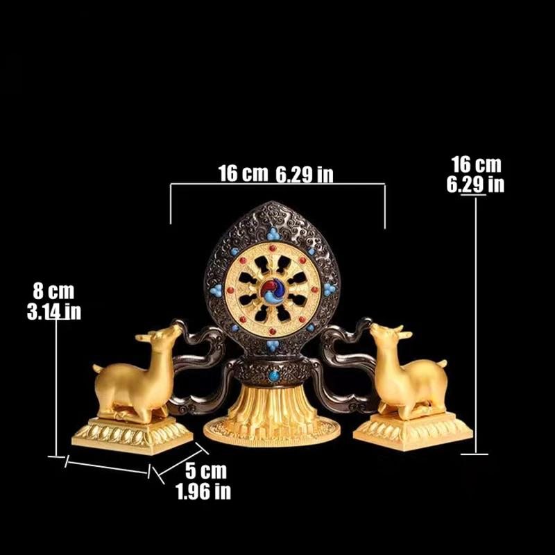 Golden Buddhist Double Deer Golden Wheel, Tantric Alloy Handicraft, Auspicious Tibetan Tribute Buddhism Gift, Indoor Decorative