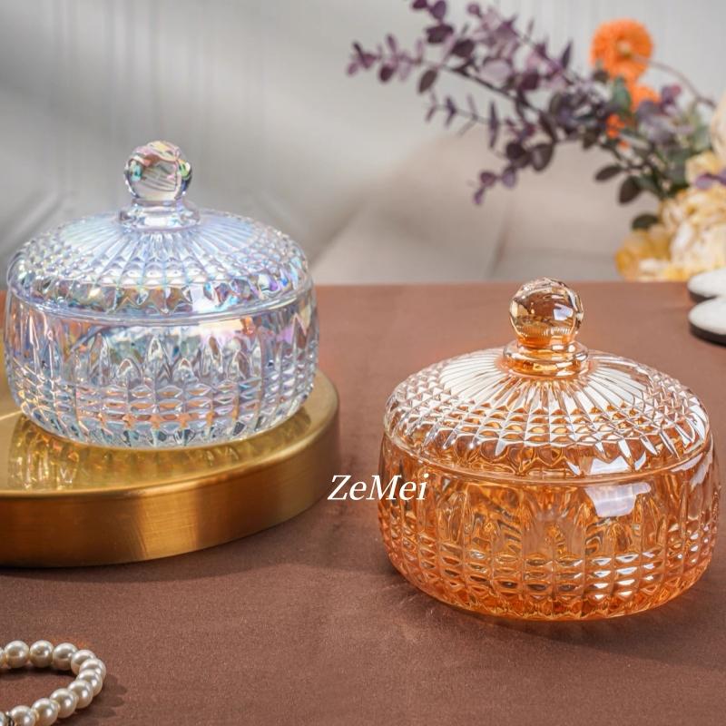 European-Style Crystal Glass Candy Jar,Jewelry Organizer Glass Jar With Lid Aromatherapy Candlestick Container Home Decoration