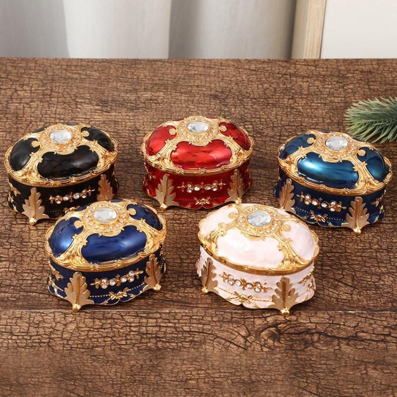 Mini Jewelry Storage Box Inlaid Gem Organizer European Style Necklace Portable Alloy Storage Earrings Ring Dresser Decorative
