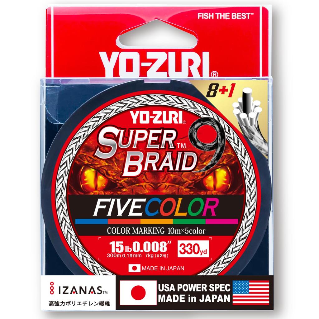 PE Line Super Braid 9 Five Color 330YDS 15Lbs 5 YO-ZURI Colors