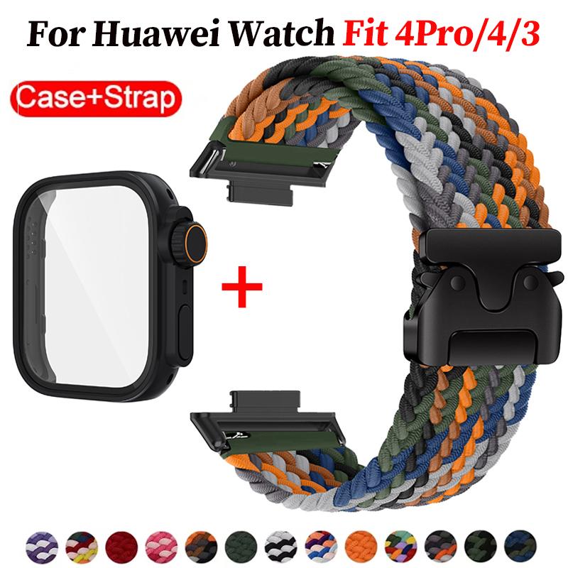 Strap+Case For Huawei Watch Fit 4Pro Band Smart Watch Nylon Adjustable Elastic Belts for Huawei Watch Fit 4 Fit 3 Correa