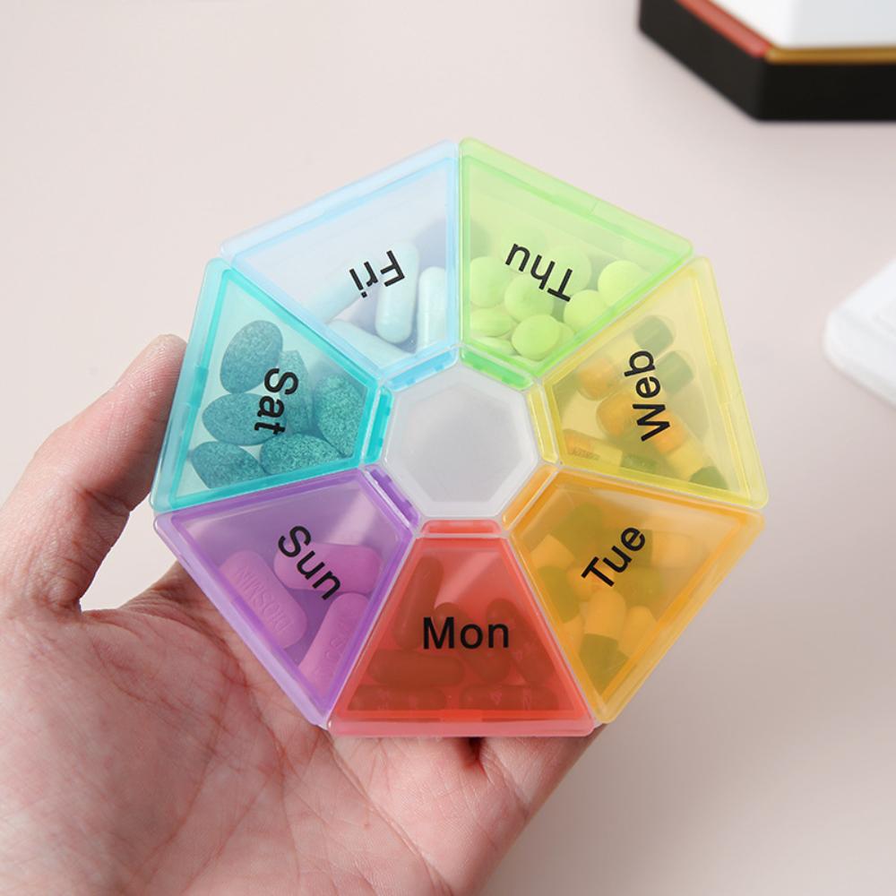 New Mini 7 Day Weekly Colorful Petal Pill Cases Organizer Box PP Food Grade Material, Portable Medicine Splitter Case Medicine
